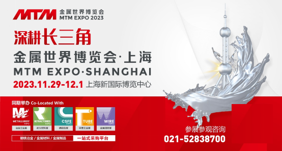 金屬世界博覽會?上海由全聯(lián)冶金商會、中國耐火材料行業(yè)協(xié)會、寶山鋼鐵股份有限公司、中國鋼結(jié)構(gòu)協(xié)會鋼管分會、上海市金屬學會、上海鋼管行業(yè)協(xié)會、天津市線材制品行業(yè)協(xié)會、天津金屬材料行業(yè)協(xié)會、上海申仕展覽服務有限公司等單位聯(lián)合主辦“2023金屬世界博覽會”(MTM EXPO)將于2023年11月29日-12月1日在上海新國際博覽中心盛大舉辦,招展現(xiàn)已正式啟動!