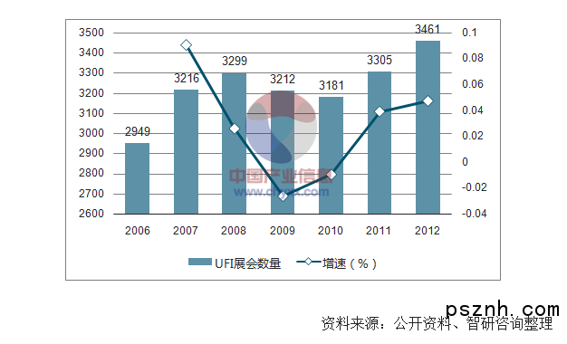 受益于各國(guó)政府的推動(dòng)作用,以及宏觀經(jīng)濟(jì)各個(gè)行業(yè)對(duì)會(huì)展服務(wù)的需求不斷深化,會(huì)展行業(yè)總體規(guī)模不斷提升。據(jù)統(tǒng)計(jì),2006 年至2012 年UFI認(rèn)證會(huì)員舉辦的會(huì)展數(shù)量由2,949 場(chǎng)增加至3,461 場(chǎng),會(huì)展面積由30.4 百萬(wàn)平方米增加至32.8 百萬(wàn)平方米。受經(jīng)濟(jì)危機(jī)影響,2009 年及2010 年全球展會(huì)數(shù)量及面積出現(xiàn)大幅下滑。2011 年后,隨著全球宏觀經(jīng)濟(jì)逐漸復(fù)蘇,會(huì)展行業(yè)的景氣度開(kāi)始回升并恢復(fù)增長(zhǎng)態(tài)勢(shì)。2006 年至2012 年UFI 展會(huì)數(shù)量及會(huì)展面積的變化趨勢(shì)具體如下: