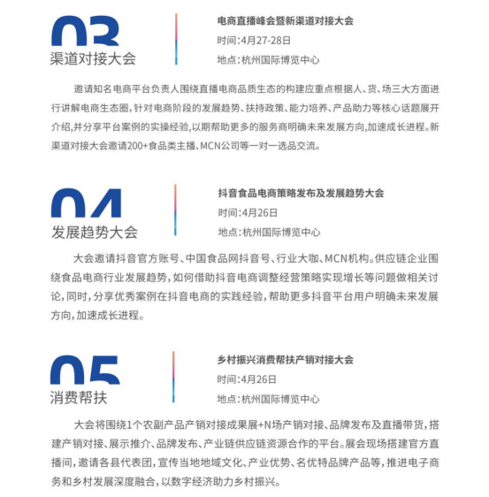 本次博覽會(huì)以“與“食”俱進(jìn)·共鏈共生”為主題,現(xiàn)場(chǎng)超30000㎡面積,匯聚來自國(guó)內(nèi)外上千家優(yōu)質(zhì)供應(yīng)鏈企業(yè),1000+MCN機(jī)構(gòu)、500+直播電商網(wǎng)紅、50000+直播電商專業(yè)觀眾匯聚杭州,邀請(qǐng)抖音、快手、小紅書、京東、淘寶、拼多多等頭部電商平臺(tái),現(xiàn)場(chǎng)與優(yōu)質(zhì)品牌對(duì)接,連接直播電商上下游,驅(qū)動(dòng)傳統(tǒng)行業(yè)轉(zhuǎn)型,實(shí)現(xiàn)數(shù)字化經(jīng)濟(jì)新增長(zhǎng)。