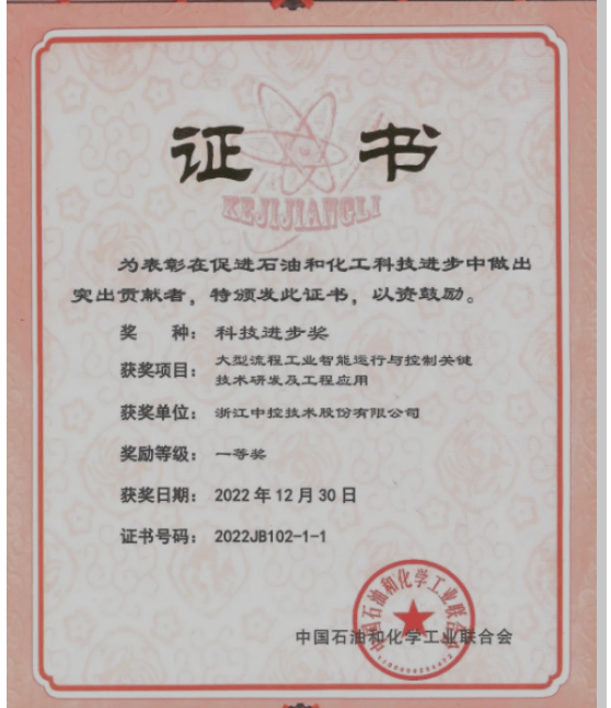 中控技術(shù)獲中國(guó)石油和化學(xué)工業(yè)聯(lián)合會(huì)“科學(xué)技術(shù)進(jìn)步一等獎(jiǎng)”