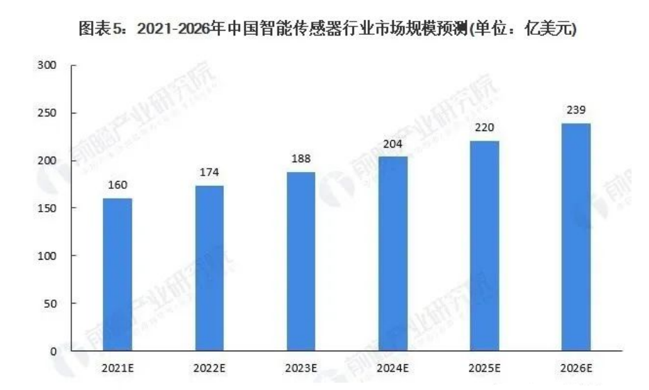 ⒌中國智能傳感器行業(yè)前景廣闊智能傳感器在工業(yè)4.0時代扮演著十分重要的角色。隨著物聯(lián)網(wǎng)在工業(yè)領(lǐng)域的應(yīng)用推廣,智能傳感器在其中的應(yīng)用越來越廣泛。物聯(lián)網(wǎng)、移動互聯(lián)網(wǎng)等新興產(chǎn)業(yè)的快速發(fā)展為智能傳感器行業(yè)帶來巨大發(fā)展契機(jī)。中國智能傳感器行業(yè)前景廣闊,預(yù)計(jì)到2026年中國智能傳感器行業(yè)市場規(guī)模將達(dá)239億美元。