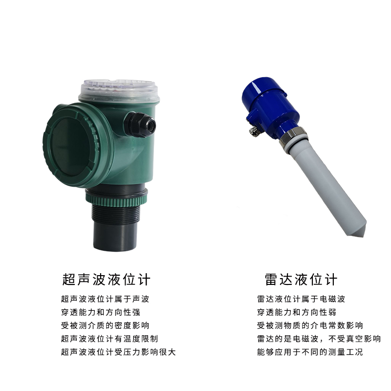 3、測量范圍不同方面不同:雷達液位計采用的是電磁波,受被測物質(zhì)的介電常數(shù)影響,而超聲波是機械波,受被測介質(zhì)的密度影響。所以在測量介電常數(shù)很低的物質(zhì)時,雷達液位計的測量效果就要大打折扣,不適宜選用雷達液位計測量。雷達液位計的測量范圍較超聲波液位計的大很多。雷達發(fā)射的是電磁波,不需要借助傳播媒介就可以測量。而超聲波是聲波和機械波,需要借助傳播媒介傳播。所以超聲波液位計不能應(yīng)用于真空、蒸汽含量過高或液面有泡沫等工況。