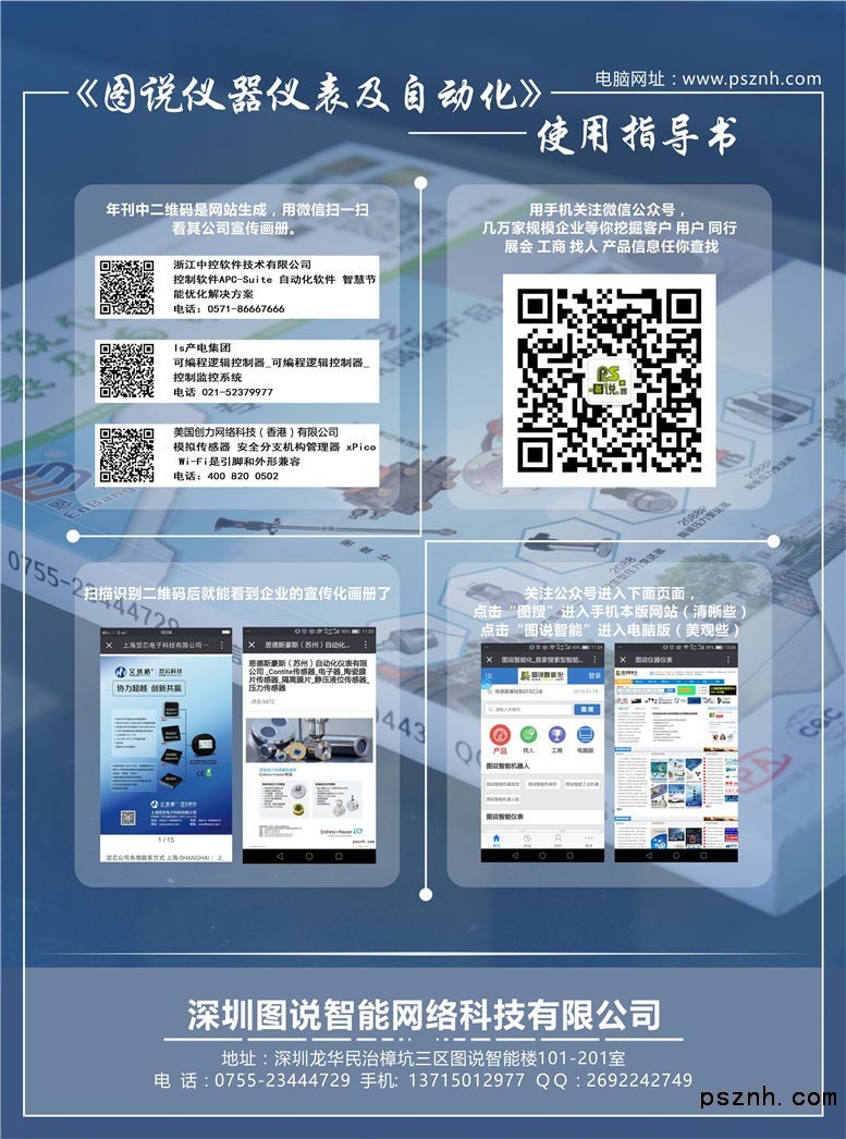《圖說儀器儀表及自動化》所刊登資源全部來自圖說智能化網(wǎng),現(xiàn)在是互聯(lián)網(wǎng)時代,更是移動手機網(wǎng)絡(luò)時代。由于刊物容量有限,需要了解到更多企業(yè)和用戶信息您是掃描關(guān)注圖說智能化公眾微信號或是搜索查找ps201403,上面是內(nèi)容是刊物內(nèi)容十倍,百倍的數(shù)量,您可隨時、隨地、隨意搜索,關(guān)注及傳播。關(guān)注公眾微信號后最左下欄目的“圖搜”是網(wǎng)站手機版,您輸入關(guān)健詞語或點擊已設(shè)定的關(guān)健詞語就能出現(xiàn)您 想要圖文并茂的資源,“圖說智能”欄是網(wǎng)站的電腦版重點圖說智能儀表  圖說工業(yè)自動圖說智能機械  圖說智能機器人及圖說智能化首頁。也是可登陸我們網(wǎng)站m.rts.org.cn關(guān)注,您可在網(wǎng)站上注冊會員把您企業(yè)的圖片上傳到網(wǎng)站中,以后的網(wǎng)站和刊物中就能傳播您公司的宣傳了!