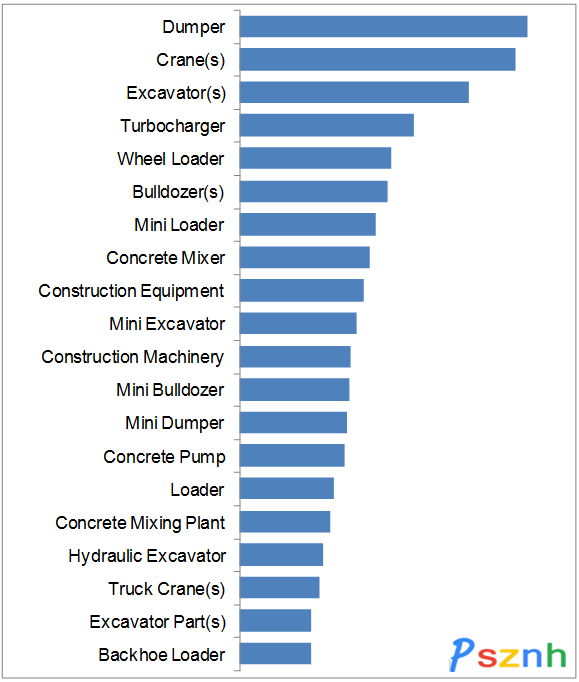 2016年1-3月工程機(jī)械行業(yè)最熱門的搜索關(guān)鍵詞為Dumper,其次為Crane(s)和Excavator(s)。