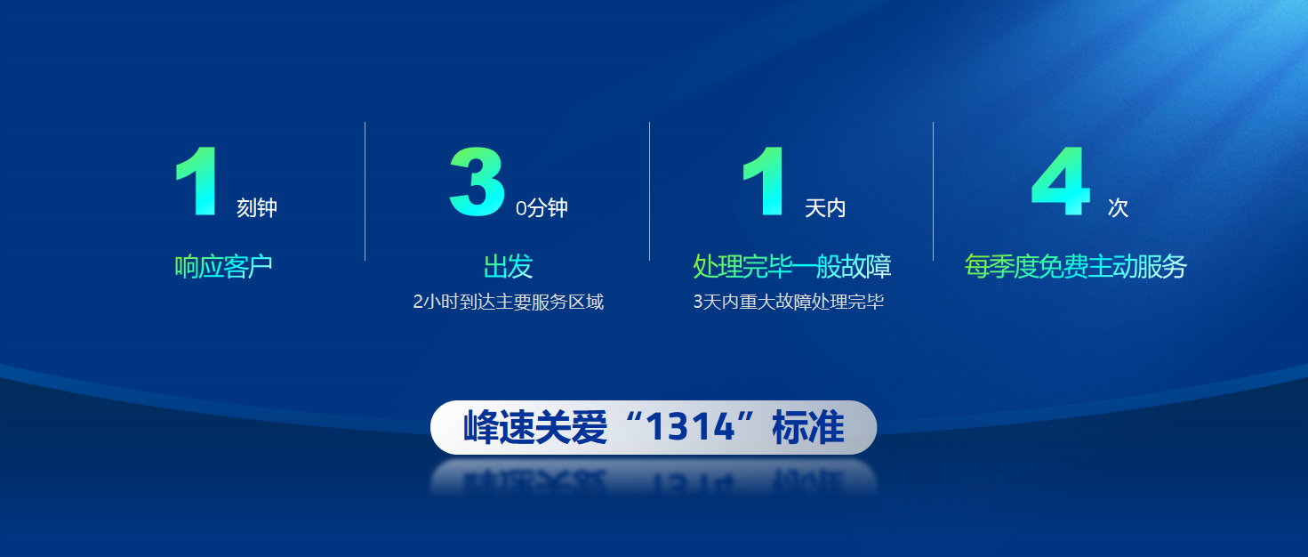 售后服務(wù)是企業(yè)連接客戶的重要觸點,優(yōu)質(zhì)的售后服務(wù)是企業(yè)的核心競爭力。公司全新“峰速關(guān)愛”服務(wù)品牌圍繞產(chǎn)品設(shè)備生命周期管理重新定義客戶服務(wù)標準,全新打造了“1314”服務(wù)標準——“1刻鐘響應(yīng)客戶;30分鐘出發(fā),2小時到達主要服務(wù)區(qū)域;1天內(nèi)處理完畢一般故障,3天內(nèi)處理完畢重大故障;每季度免費主動服務(wù)4次”,確保為客戶提供“響應(yīng)貼心、服務(wù)暖心、質(zhì)量安心、價格公心、全程放心”的五“心”服務(wù)。