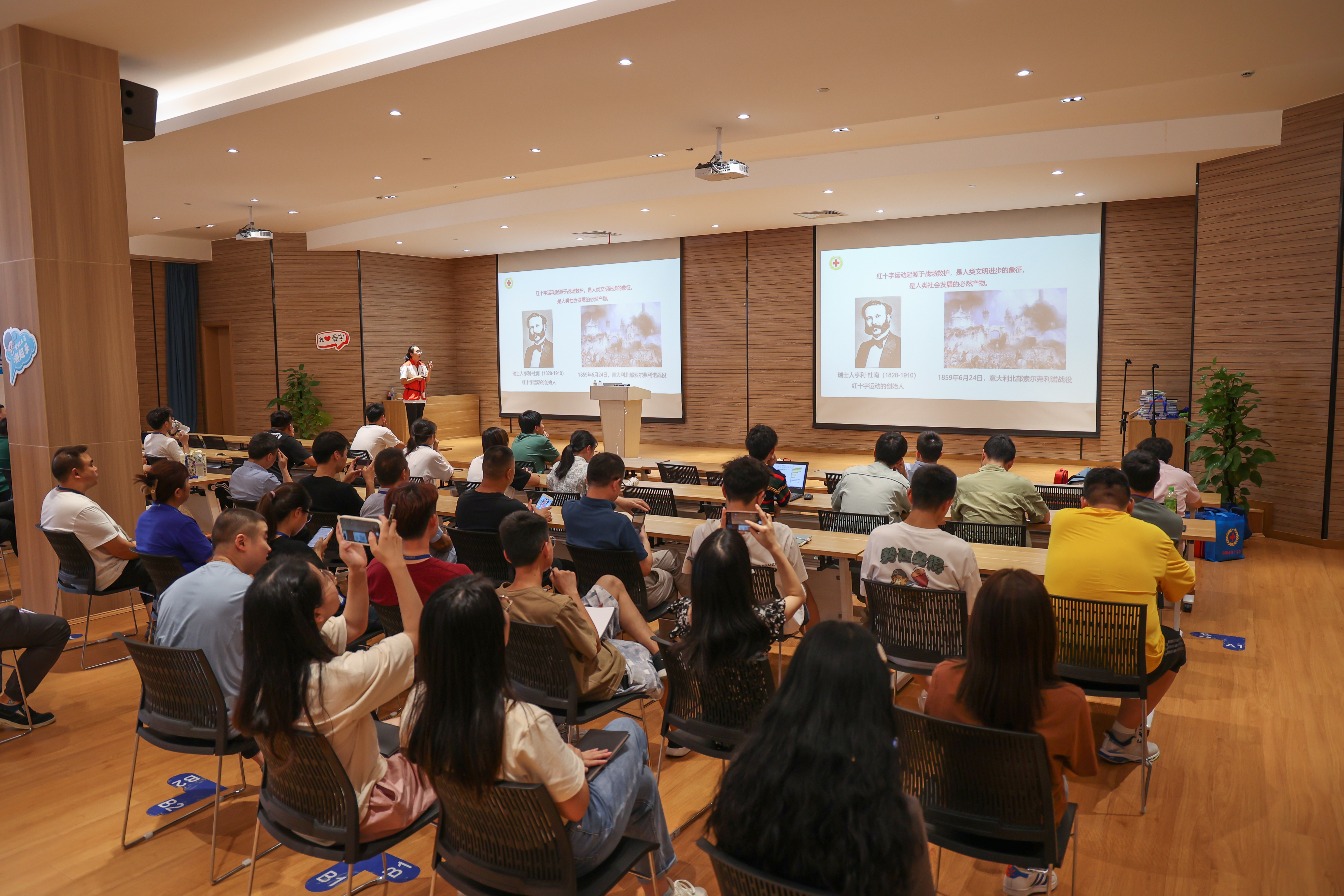 課堂上,培訓(xùn)老師通過理論、視頻和實操互結(jié)合的方式,系統(tǒng)地向?qū)W員們講解意外傷害現(xiàn)場救護(hù)等知識。