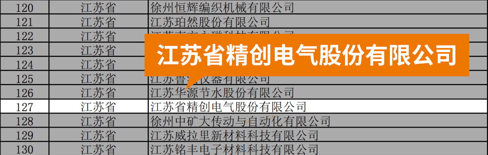 近日,工業(yè)和信息化部第四批國家級專精特新“小巨人”企業(yè)名單公示出爐,江蘇省精創(chuàng)電氣股份有限公司成功上榜。