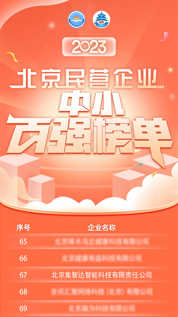 集智達榮登“2023北京民營企業(yè)中小百強”榜單!