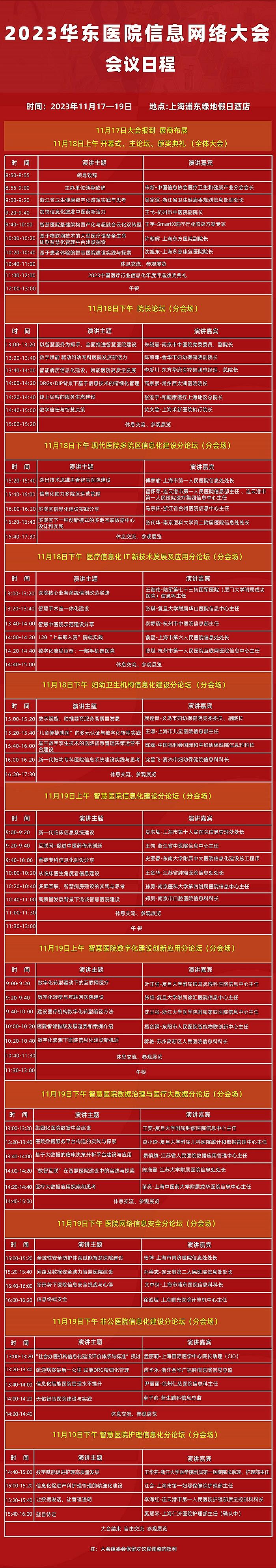 2023年華東醫(yī)院信息網(wǎng)絡(luò)大會日程安排