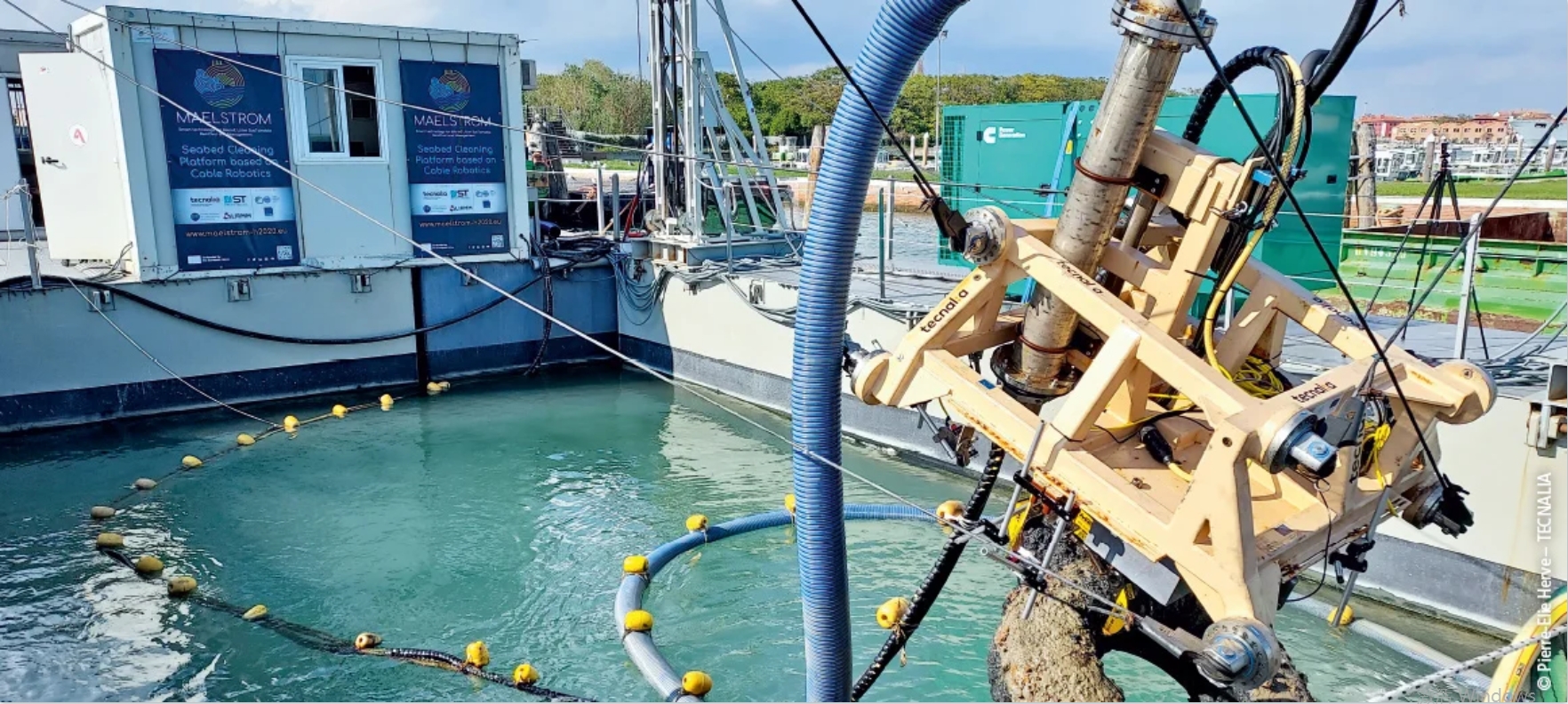如果想要防止垃圾危害脆弱的水下生態(tài)系統(tǒng),或者防止微塑料和納米塑料通過食物鏈進入我們的身體,就必須阻止水域受到進一步污染,清理水下垃圾。這正是歐盟“地平線 2020” — MAELSTROM 項目的目標:開發(fā)和整合各項技術,以識別、清除、分揀各類海洋垃圾并將其轉化為原材料。為此,一個由西班牙 TECNALIA 研究院、法國 CNRS-LIRMM 機器人研究所和意大利 Servizi Tecnici 公司組成的國際研究小組開發(fā)了“海底垃圾清理機器人”。其核心是一個配備抓手和抽吸裝置的水下機器人,借助 8 個絞盤在六個自由度內靈活移動。