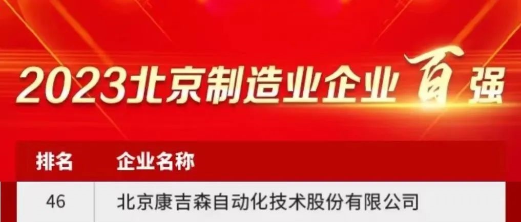 康吉森,2023北京制造業(yè)百強企業(yè)