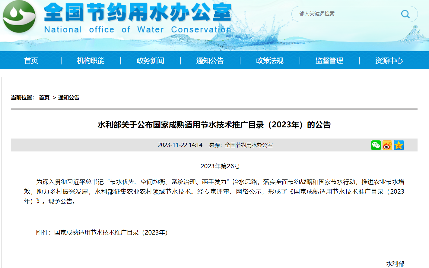 上??咸卦俅稳脒x“國家成熟適用節(jié)水技術(shù)推廣目錄”