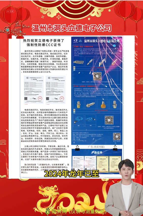 過(guò)去的一年,立德電子在您的支持下,取得了驕人的成績(jī)。我們專(zhuān)注于防爆接近開(kāi)關(guān)、電感式接近開(kāi)關(guān)、電容式接近開(kāi)關(guān)、磁式接近開(kāi)關(guān)、光電開(kāi)關(guān)及輸送帶保護(hù)裝置產(chǎn)品的研發(fā)和生產(chǎn),防爆產(chǎn)品不僅取得防爆合格證及國(guó)家強(qiáng)制性認(rèn)證證書(shū),還得到了國(guó)內(nèi)外客戶(hù)的一致認(rèn)可。感謝您一直以來(lái)的信任與支持,是您的陪伴使得立德電子得以不斷發(fā)展并獲得了省科技型企業(yè)。