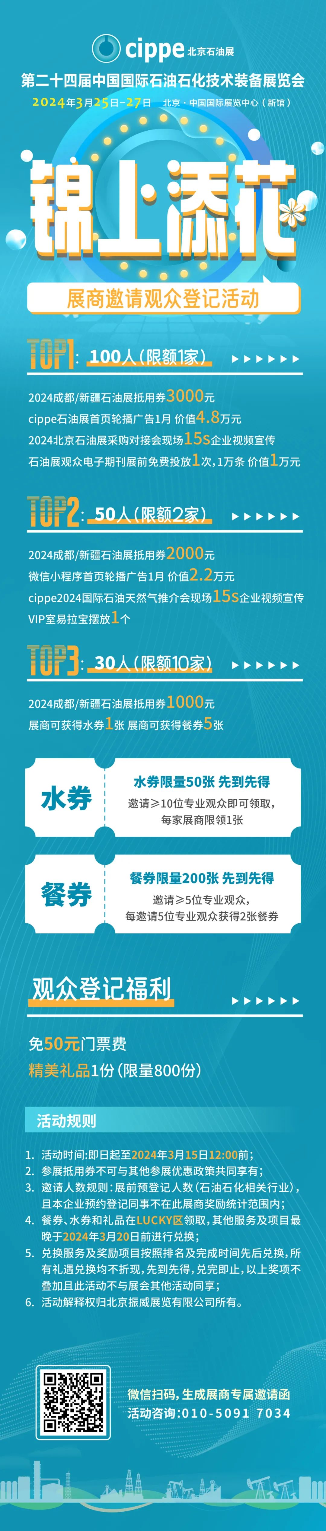 2024年3月25-27日,一年一度的世界石油天然氣大會——第二十四屆中國國際石油石化技術(shù)裝備展覽會(cippe2024)將在北京?中國國際展覽中心(新館)舉行。