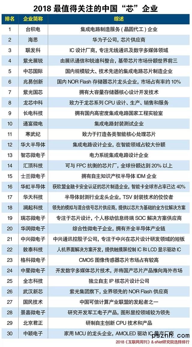 國貨當自強 中國芯片企業(yè)TOP30