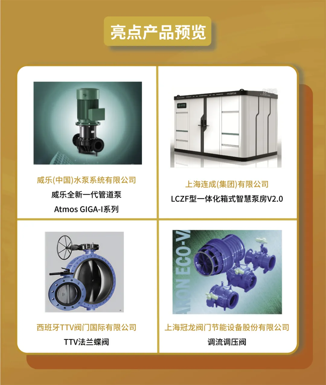 歷時10余年上海國際泵閥展已成為全球最大的泵管閥展覽會,是泵閥人的首選商貿(mào)平臺。第十二屆上海國際泵閥展將于202463-5上海國家會展中心(虹橋)隆重開幕!60,000㎡展示規(guī)模,匯聚格蘭富、威樂、凱士比、賽萊默、賓泰克、荏原、佩德羅、杜科、羅瓦迪、澤德、添理仕、何塞、TTV、艾川格、羅托克、+GF、凱泉、連成、利歐、新界、大元、銘星供水、大福、冠龍1200家國內(nèi)外品牌展商,集中展示泵、閥門、智能供水設(shè)備、排水設(shè)備、管道/管件、執(zhí)行機構(gòu)、泵管閥配套產(chǎn)品、電機、直飲水系統(tǒng)等系列產(chǎn)品及技術(shù)解決方案。