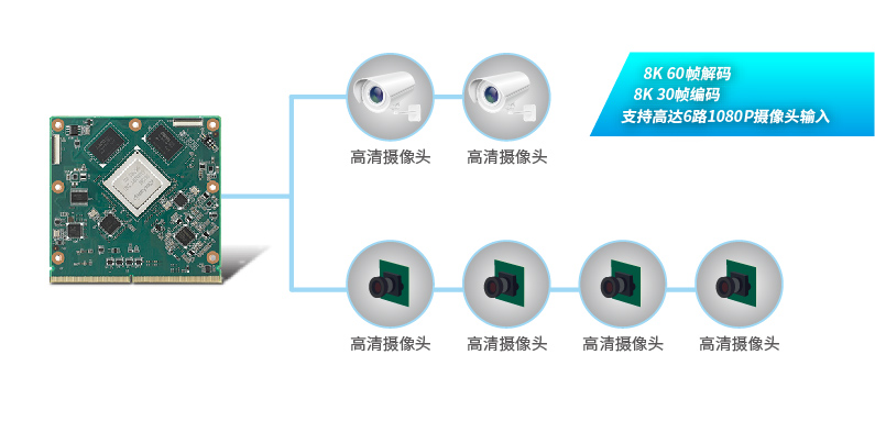 強(qiáng)大視覺處理能力,支持6路以上攝像頭并行輸入,提供多種視頻輸入驗證方案