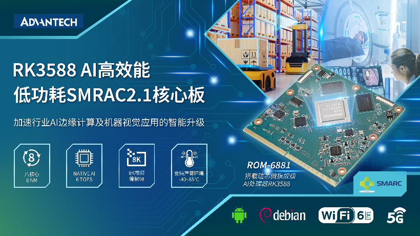 研華發(fā)布核心模塊ROM-6881,采用SGeT協(xié)會SMARC2.1標(biāo)準(zhǔn),集成瑞芯微全新一代AIOT旗艦處理器RK3588/RK3588J,具備強(qiáng)大的計算性能,高AI算力,滿足多媒體處理需求。憑借低功耗,豐富的IO接口設(shè)計,ROM-6881實現(xiàn)高性價比、工規(guī)可靠、10年生命周期支持,助力機(jī)器人,醫(yī)療,能源行業(yè)打造更快速,更高效的智能邊緣AI方案。