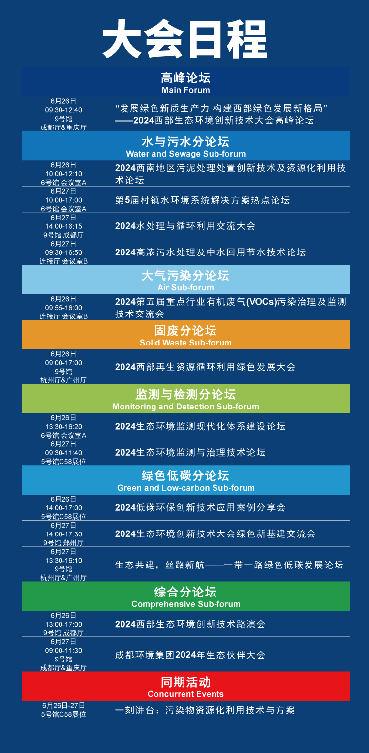 高峰論壇以及各領域分論壇詳細議程可點擊(6月26-28日,2024生態(tài)環(huán)境創(chuàng)新技術大會邀您“蓉城”相見 )查看!
