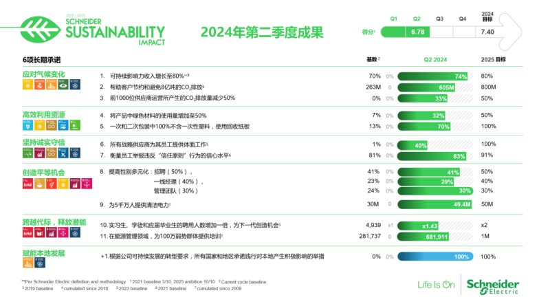 “2021-2025施耐德電氣可持續(xù)發(fā)展影響指數(shù)(SSI)計劃”2024年第二季度成果