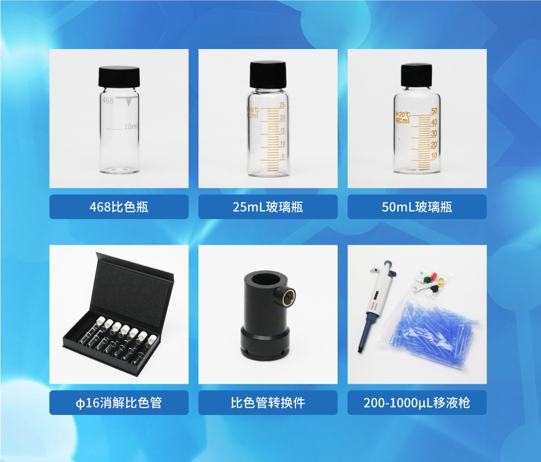 • 標(biāo)配25mm比色瓶和16mm消解比色管,滿足不同的比色方式和消解需求