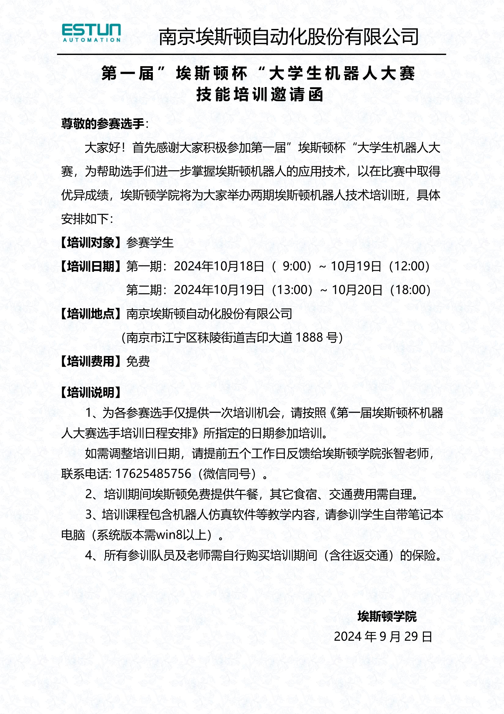 第一屆“埃斯頓杯”大學(xué)生機(jī)器人大賽技能培訓(xùn)通知