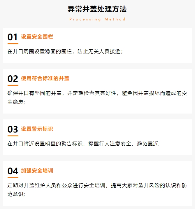 每次看到這樣的新聞都讓人深感痛心,墜井事件每年都有發(fā)生,不斷向人們敲響安全警鐘。窨井安全管理是至關(guān)重要的,它關(guān)系到人身安全和公共安全。