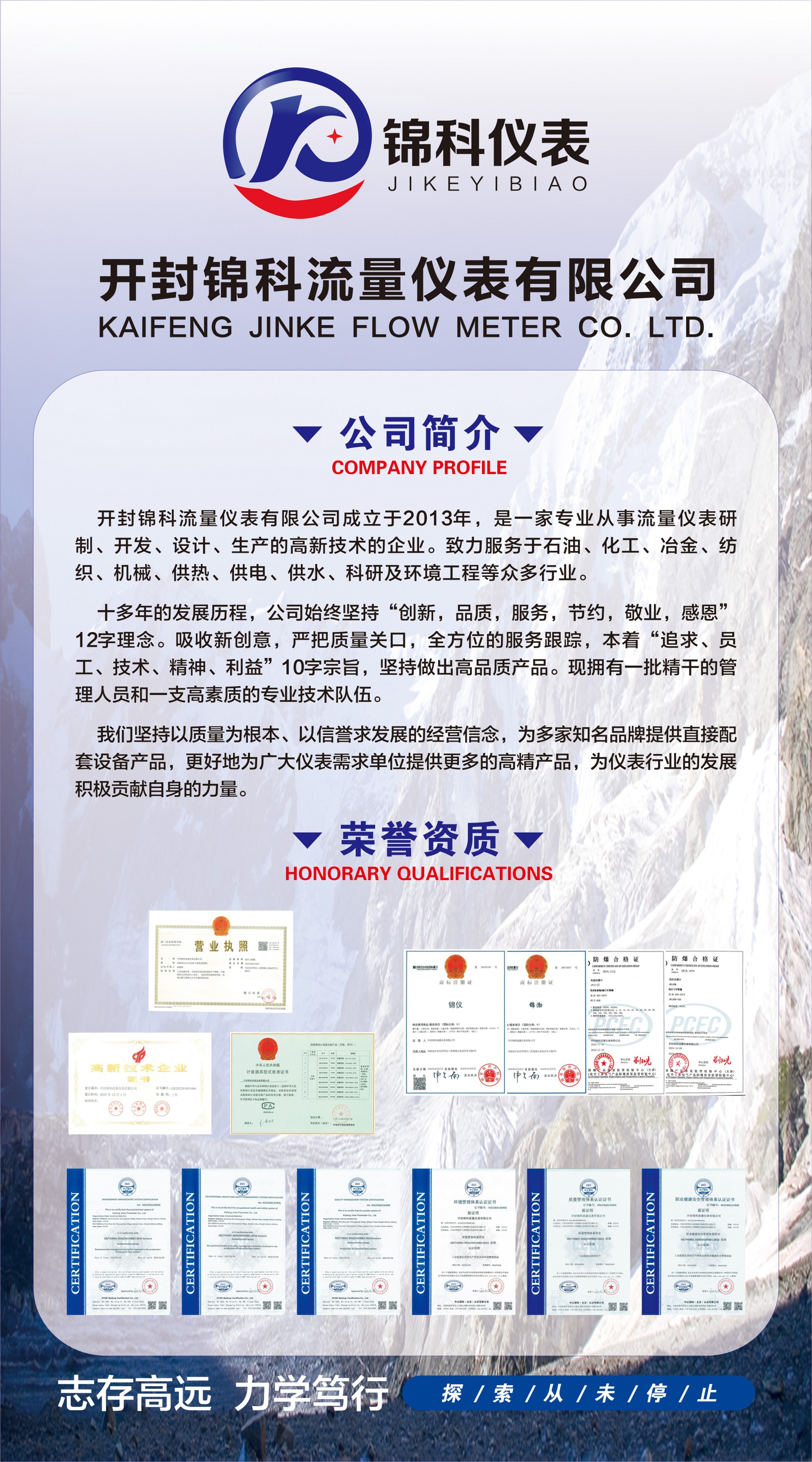 開(kāi)封錦科流量?jī)x表有限公司,位于流量?jī)x表基地 “八朝古都” 開(kāi)封,地理位置得天獨(dú)厚,交通十分便利。多年來(lái),公司專(zhuān)注于流量?jī)x表的研制、開(kāi)發(fā)、設(shè)計(jì)與生產(chǎn),是行業(yè)內(nèi)的佼佼者。公司以服務(wù)石油、化工、冶金、紡織、機(jī)械、供熱、供電、供水、科研及環(huán)境工程等眾多行業(yè)為己任,以優(yōu)質(zhì)的產(chǎn)品和專(zhuān)業(yè)的服務(wù)滿足各行業(yè)的流量計(jì)量需求。