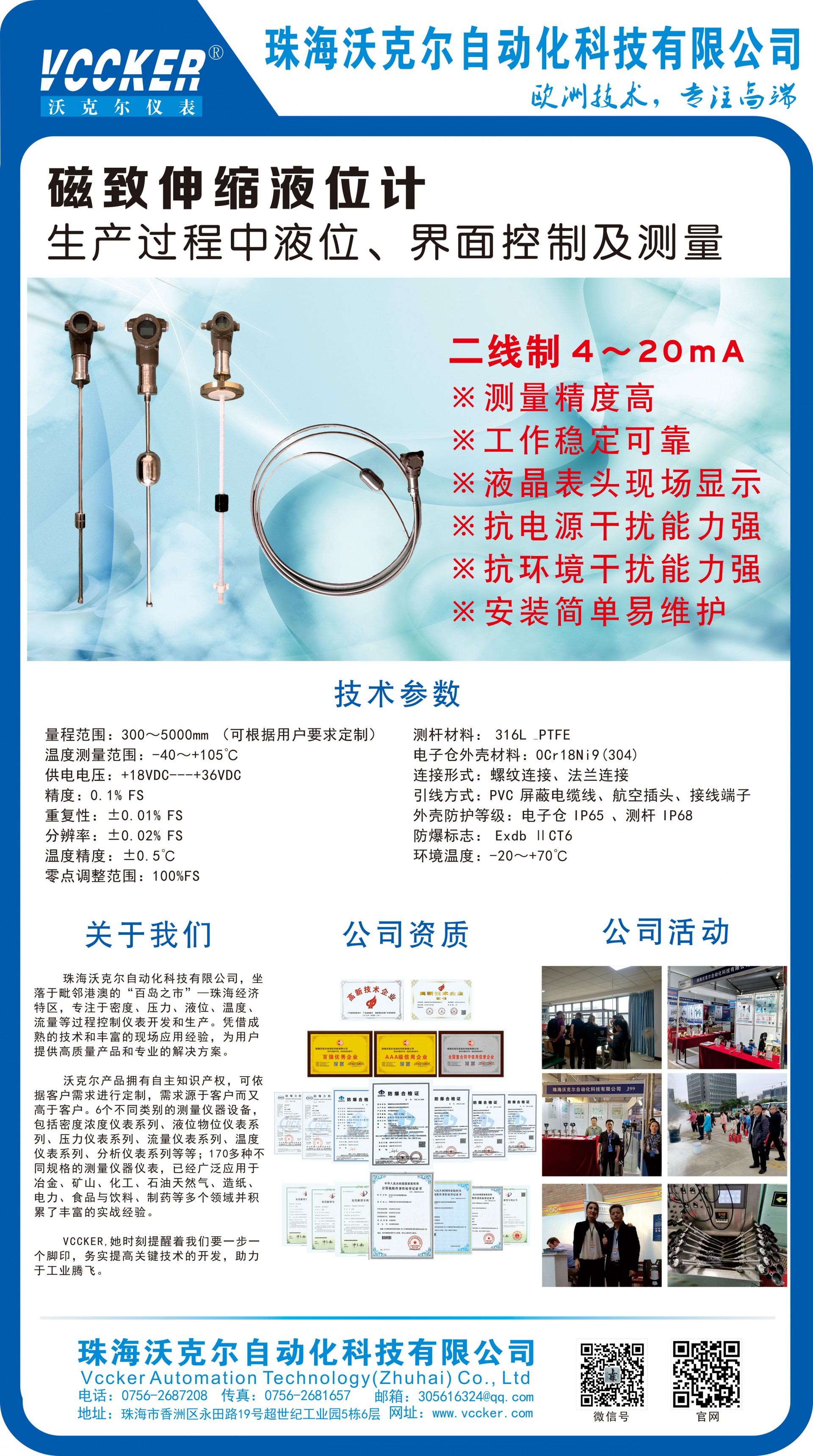 珠海沃克爾自動(dòng)化科技有限公司,坐落于毗鄰港澳的 “百島之市”—— 珠海經(jīng)濟(jì)特區(qū)。公司專注于密度、壓力、液位、溫度、流量等過程控制儀表的開發(fā)與生產(chǎn),猶如一位專注的匠人,在計(jì)量?jī)x表領(lǐng)域精雕細(xì)琢。憑借成熟的技術(shù)和豐富的現(xiàn)場(chǎng)應(yīng)用經(jīng)驗(yàn),沃克爾公司為用戶提供高質(zhì)量產(chǎn)品和專業(yè)的解決方案,成為用戶值得信賴的合作伙伴。