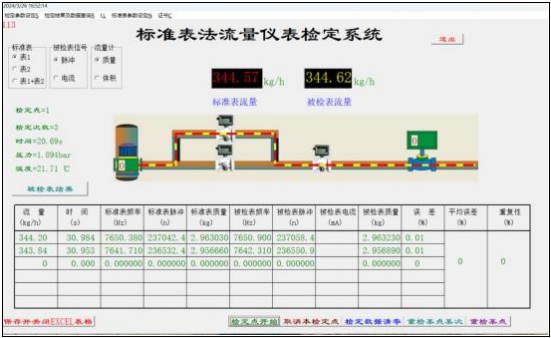 該裝置基于流體連續(xù)流原理,以標(biāo)準(zhǔn)表(如渦輪流量計(jì)、渦街流量計(jì)、電磁流量計(jì)、容積式流量計(jì)、科里奧利質(zhì)量流量計(jì)等)為主標(biāo)準(zhǔn)器,在相同時(shí)間間隔內(nèi)流體連續(xù)通過標(biāo)準(zhǔn)表和被檢流量計(jì),通過比較兩者的輸出流量值,確定被檢流量計(jì)的計(jì)量性能。根據(jù)液體不可壓縮的原理,在同一管道中任何時(shí)刻不同截面處的流量均相等,通過精確測(cè)量標(biāo)準(zhǔn)表與被檢表的脈沖信號(hào)計(jì)數(shù)及標(biāo)準(zhǔn)表的儀表系數(shù),利用特定公式計(jì)算得出被檢表的儀表系數(shù),從而實(shí)現(xiàn)對(duì)被檢流量計(jì)的標(biāo)定。
