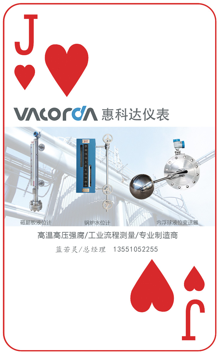 在后續(xù)的推廣過程中,《2025 圖頁網(wǎng)儀表行業(yè)摜蛋撲克牌》將通過圖頁網(wǎng)《儀表與測量控制》一年 40 多場展會發(fā)行,并作為禮品發(fā)送到水處理展、環(huán)博會、世環(huán)會、石油化工展、多國儀表展、上海傳感器展、自動化展等展會的專業(yè)負(fù)責(zé)人手中,覆蓋儀表用戶行業(yè)。相信通過這種全方位的推廣,四川惠科達(dá)儀表制造有限公司以及其他參與企業(yè)的品牌將得到進(jìn)一步提升,為企業(yè)帶來更多的訂單和發(fā)展機(jī)遇。