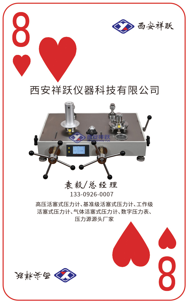 西安祥躍儀器科技有限公司位于十三朝古都西安,公司的發(fā)展歷程凝聚著兩代人的智慧與心血。經(jīng)過多年的沉淀與積累,公司形成了自有研發(fā)技術(shù)和核心團(tuán)隊,在計量校準(zhǔn)產(chǎn)品領(lǐng)域取得了顯著成就。公司專注于基準(zhǔn)級活塞式壓力計、工作級活塞式壓力計、氣體活塞式壓力計、數(shù)字壓力表、壓力源等系列產(chǎn)品的研發(fā)與生產(chǎn),為計量、電力、石油、化工、醫(yī)療等行業(yè)提供了優(yōu)質(zhì)的產(chǎn)品和服務(wù)。
