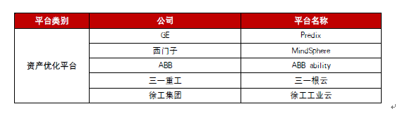 資產(chǎn)優(yōu)化平臺(tái)主要運(yùn)用在設(shè)備資產(chǎn)的管理與運(yùn)營(yíng)方面,它是通過(guò)現(xiàn)代傳感、移動(dòng)通信等技術(shù)連接智能終端,并從終端收集關(guān)于設(shè)備、環(huán)境等各類(lèi)數(shù)據(jù)信息,然后基于這些數(shù)據(jù)在云端利用大數(shù)據(jù)、人工智能等技術(shù)及行業(yè)經(jīng)驗(yàn)知識(shí)對(duì)設(shè)備運(yùn)行狀態(tài)與性能狀況進(jìn)行實(shí)時(shí)智能分析,再以工業(yè)App 程序的形式為生產(chǎn)與決策提供相應(yīng)的智能化服務(wù)。資產(chǎn)優(yōu)化平臺(tái)主要的參與廠(chǎng)商往往是工控企業(yè)以及大型設(shè)備生產(chǎn)商。資產(chǎn)優(yōu)化平臺(tái)是未來(lái)制造業(yè)主導(dǎo)權(quán)競(jìng)爭(zhēng)的制高點(diǎn)。它不僅能夠充分融入大數(shù)據(jù)、人工智能等先進(jìn)技術(shù),還能為第三方提供開(kāi)發(fā)環(huán)境,如西門(mén)子的MindSphere GE Predix 平臺(tái)都提供軟件開(kāi)發(fā)環(huán)境及工具,旨在通過(guò)第三方開(kāi)發(fā)者和應(yīng)用程序的接入形成類(lèi)似Apple Store 的第三方開(kāi)發(fā)應(yīng)用生態(tài)。目前,工業(yè)巨頭是此類(lèi)平臺(tái)主要的推進(jìn)助力,如GE、西門(mén)子、ABB 等,我國(guó)的三一根云以及徐工工業(yè)云也屬于此類(lèi)平臺(tái),但發(fā)展程度相對(duì)滯后。