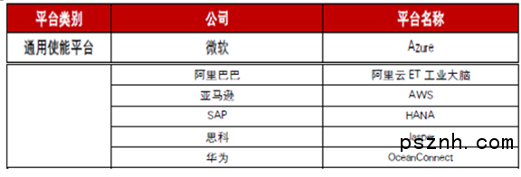 通用使能平臺(tái)主要提供云計(jì)算、物聯(lián)網(wǎng)、大數(shù)據(jù)的基礎(chǔ)性、通用性服務(wù),主要由ICT 企業(yè)提供。其中部分平臺(tái)側(cè)重于云服務(wù)的數(shù)據(jù)計(jì)算及存儲(chǔ),如微軟的Azure、SAP HANA、亞馬遜的AWS以及我國(guó)的阿里云、騰訊云等,部分平臺(tái)側(cè)重于物聯(lián)網(wǎng)的設(shè)備連接管理,如思科的Jasper、華為的OceanConnect 等。這類(lèi)平臺(tái)為資產(chǎn)優(yōu)化及資源配置型工業(yè)互聯(lián)網(wǎng)提供技術(shù)支撐,如GE Predix 就部署于微軟的Azure 平臺(tái),此外,通用使能平臺(tái)還廣泛應(yīng)用于金融、娛樂(lè)、生活服務(wù)等各行業(yè)。