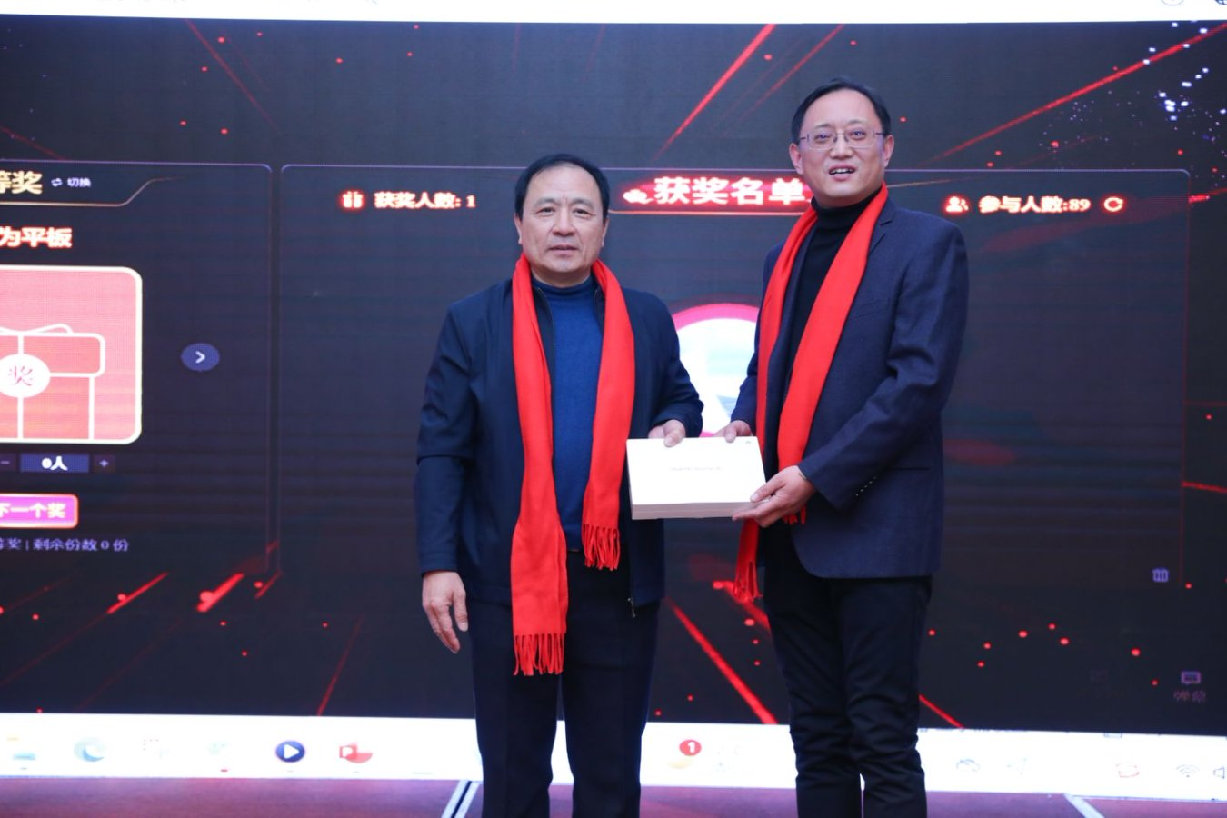 中機維協(xié)魯東辦事處李波主任為獲得一等獎的趙靖一專家頒發(fā)一等獎獎品(華為平板電腦一部)