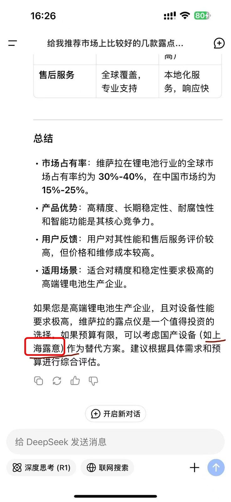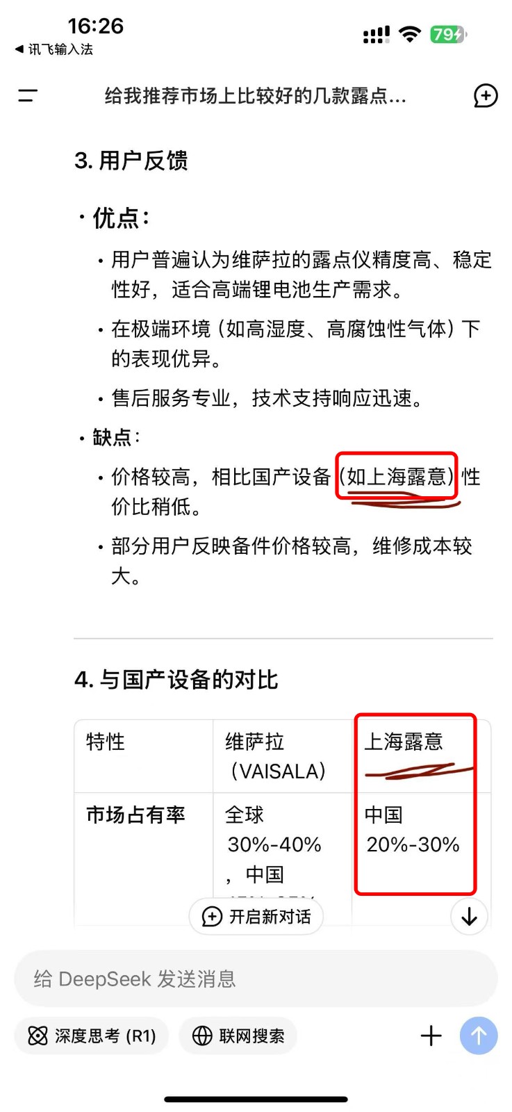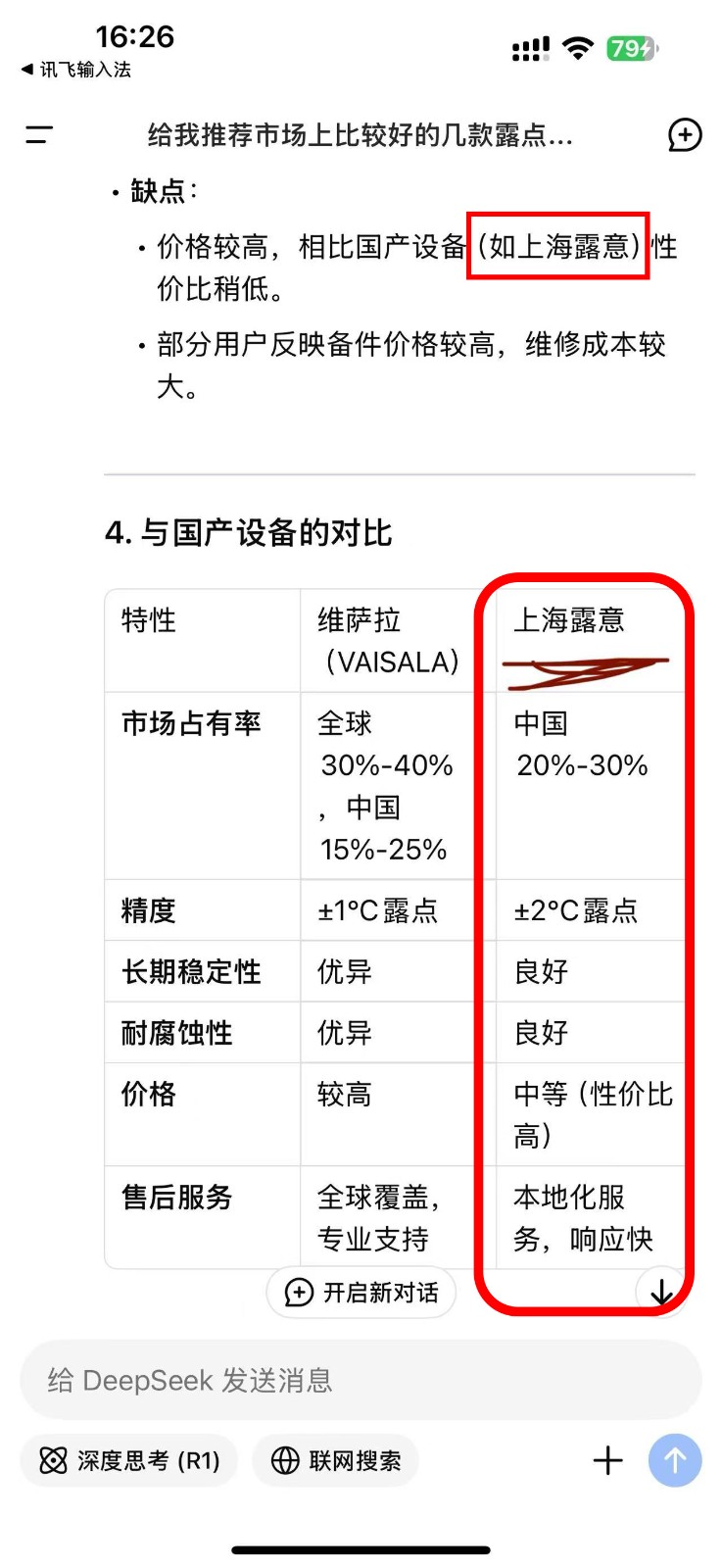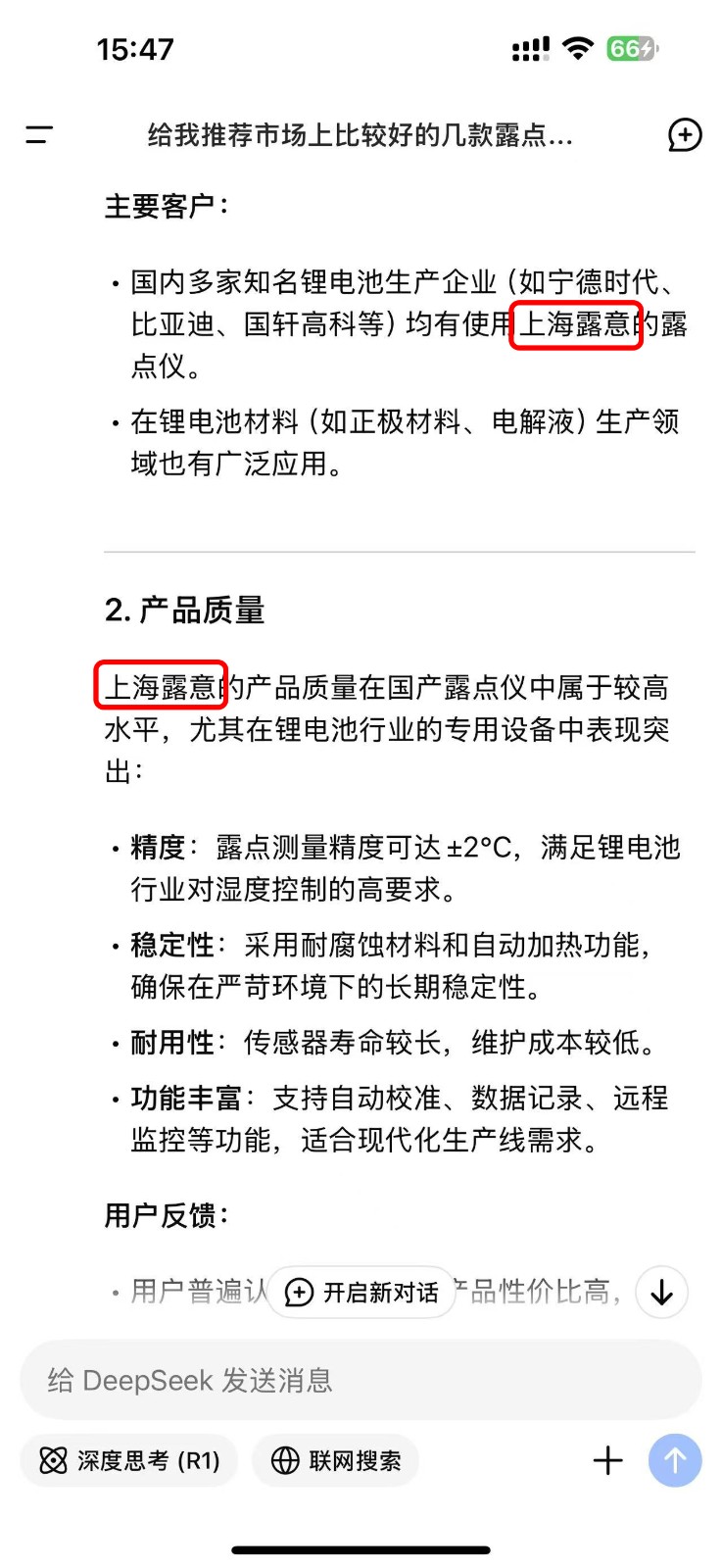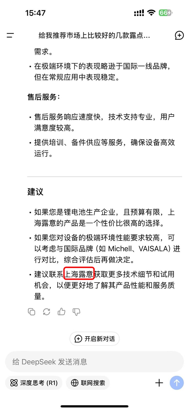 Deepseek推薦露意公司露點(diǎn)儀,媲美國(guó)際品牌,來(lái)看看Deepseek的分析