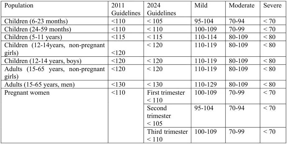 (WHO 2024年新指南將6-23月齡標(biāo)準(zhǔn)從<110g/L下調(diào)至<105g/L)