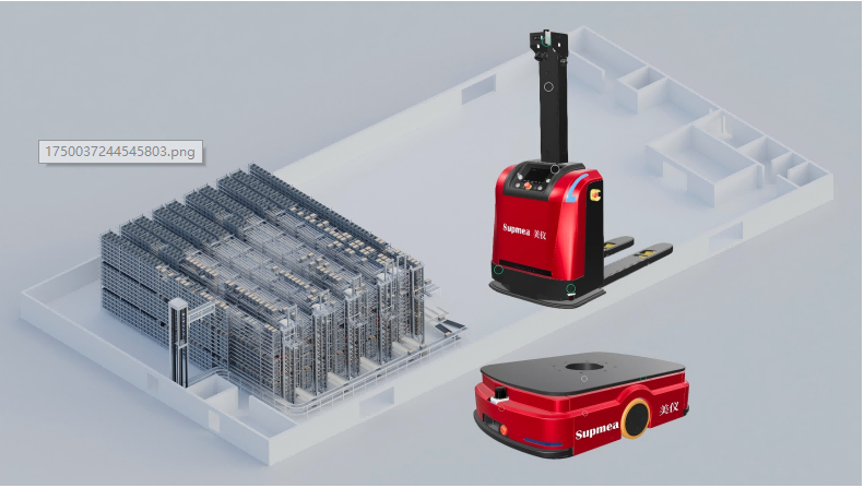 同時,4臺 AGV 也已同步部署運行,包括2臺潛伏式用于線邊配送、2臺叉車式用于大件搬運。系統(tǒng)采用SLAM激光導(dǎo)航技術(shù),具備自主路徑規(guī)劃與智能避障能力,可實現(xiàn)7×24小時連續(xù)作業(yè)。