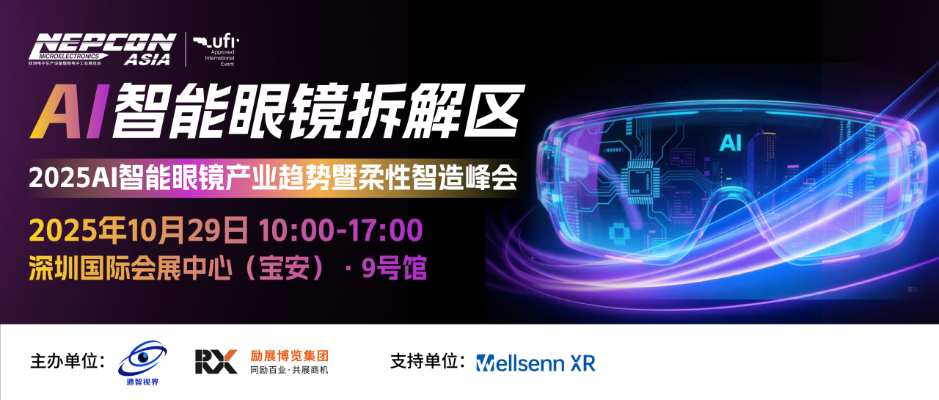 本屆展會(huì)聚集影目、谷東、唯酷、大朋vr等眾多AI智能眼鏡終端廠商匯聚,立體呈現(xiàn)從光學(xué)技術(shù) 、芯片與計(jì)算能力、傳感器、交互技術(shù)、電池技術(shù)、輕量化材料等核心部件到終端應(yīng)用的前沿新品,為企業(yè)與廣大觀眾產(chǎn)品創(chuàng)新及研發(fā)提供更多的思考。展區(qū)配有2025 AI智能眼鏡產(chǎn)業(yè)趨勢暨柔性智造峰會(huì),多位AI智能眼鏡知名企業(yè)領(lǐng)袖及代表,深入分析智能眼鏡產(chǎn)業(yè)生態(tài)及柔性制造技術(shù),為廣大觀眾揭秘智能眼鏡產(chǎn)業(yè)技術(shù)底層邏輯與發(fā)展趨勢,撬動(dòng)智能眼鏡藍(lán)海商機(jī)!