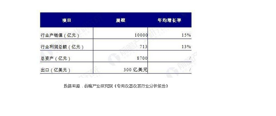 “十三五”儀器儀表行業(yè)前景預(yù)測(cè)(單位:億元,%)