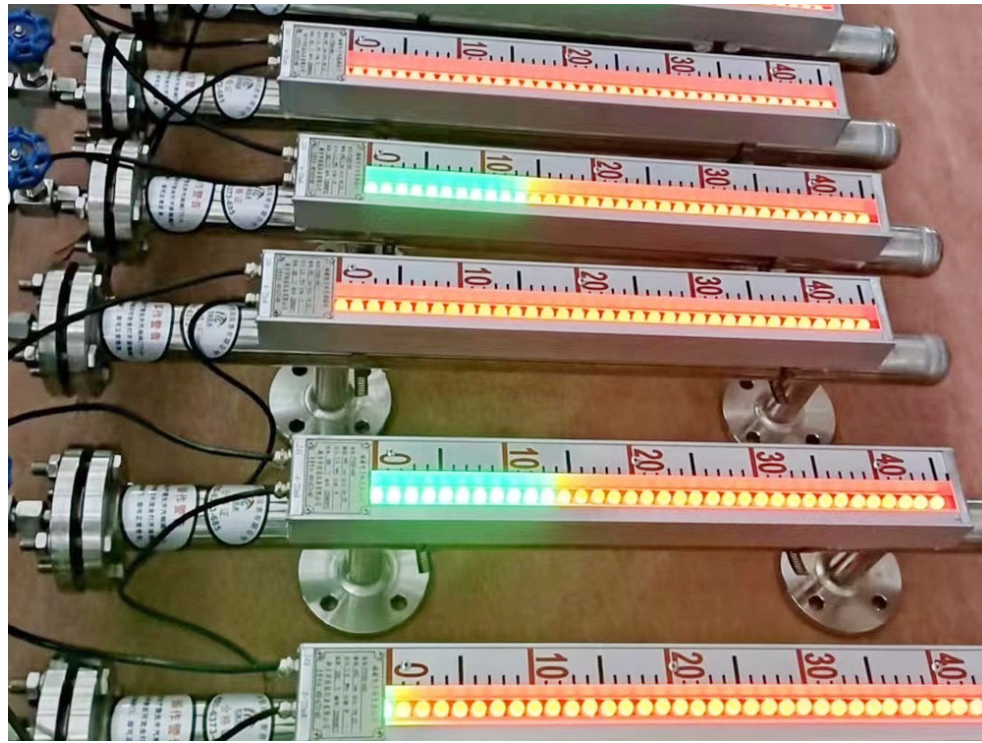 3、液位計安裝完畢后,需用磁鋼進行校正,對磁翻柱導(dǎo)引一次,使零位以下顯示有紅色,零位以上顯示為綠色。
