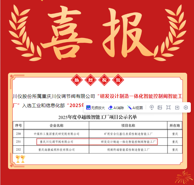 喜報|智能控制閥工廠入選 “2025年卓越級智能工廠” 彰顯智造硬實力