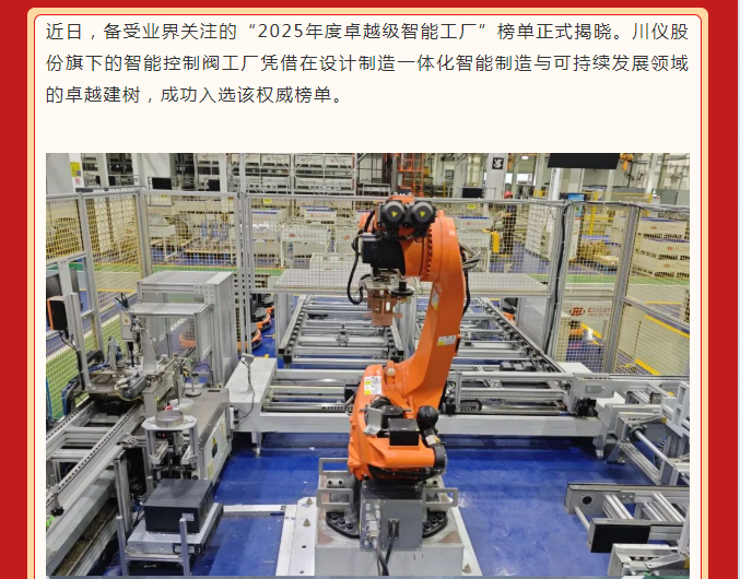 “卓越級智能工廠”評選素以維度全面、標(biāo)準(zhǔn)嚴(yán)苛著稱,其評估體系涵蓋運營效率、技術(shù)創(chuàng)新、質(zhì)量管理和綠色制造等關(guān)鍵指標(biāo)。此次成功入選,標(biāo)志著智能控制閥工廠的綜合運營與管理能力已獲得權(quán)威認(rèn)可,躋身國內(nèi)制造先進(jìn)行列。