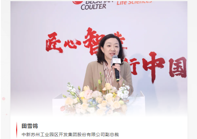 中新蘇州工業(yè)園區(qū)開發(fā)集團(tuán)股份有限公司副總裁田雪鸰上臺致辭。蘇州工業(yè)園區(qū)作為國家級經(jīng)開區(qū),擁有卓越的產(chǎn)業(yè)生態(tài)和發(fā)展環(huán)境,生物醫(yī)藥及大健康產(chǎn)業(yè)在這里蓬勃發(fā)展。她提到,園區(qū)將秉持親商服務(wù)理念,為貝克曼庫爾特生命科學(xué)提供更優(yōu)質(zhì)營商環(huán)境,期待其持續(xù)擴(kuò)大戰(zhàn)略布局,與園區(qū)共享發(fā)展新機(jī)遇。