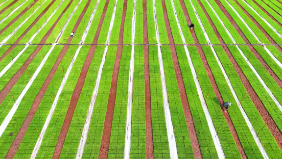 工作人員正在管理秧苗