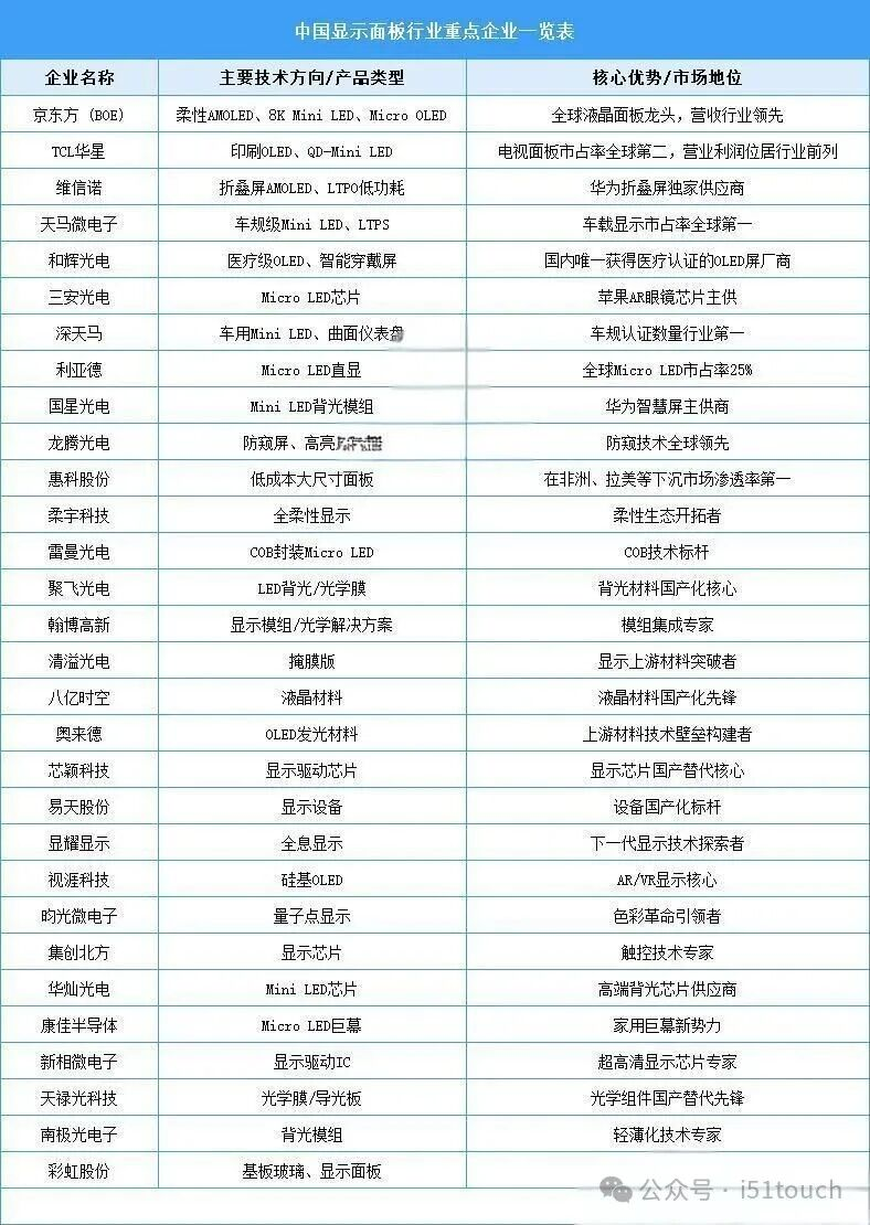 中國顯示京東方、TCL華星稱霸全球LCD市場,維信諾、天馬殺出新戰(zhàn)場(附表:中國顯示面板行業(yè)重點(diǎn)企業(yè)一覽表)