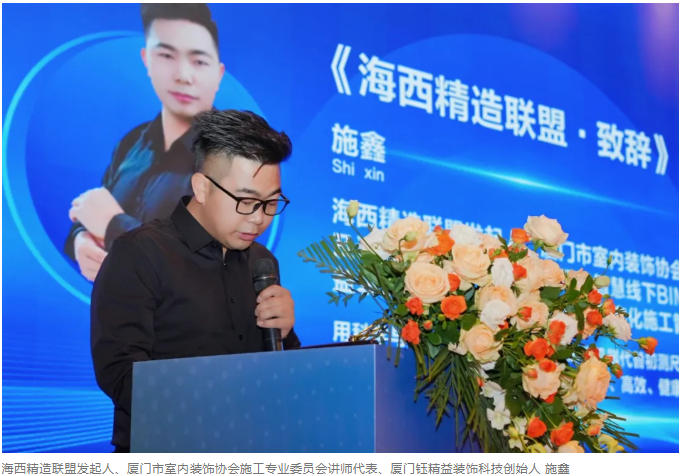 活動開場,海西精造聯(lián)盟發(fā)起人、廈門市室內(nèi)裝飾協(xié)會施工專業(yè)委員會講師代表、廈門鈺精益裝飾科技創(chuàng)始人施鑫指出,面對裝飾行業(yè)市場縮水、標準不一、客戶滿意度低等挑戰(zhàn),海西精造聯(lián)盟應(yīng)運而生。