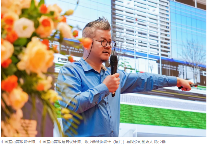 中國室內(nèi)高級設(shè)計師、中國室內(nèi)高級建筑設(shè)計師、陳少群裝飾設(shè)計(廈門)有限公司創(chuàng)始人陳少群聚焦“設(shè)計理念與精造基礎(chǔ)”、“空間體驗與工藝細節(jié)”、“項目管理差異化與品質(zhì)控制”帶來精彩分享。他表示,“一個好的設(shè)計,除了自身熱愛,要有故事,有高質(zhì)量的建造,更需要讓建筑與人之間存有溫度。