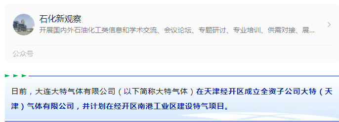 投資超億元!大特氣體特氣項目落戶泰達