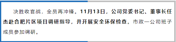 任杰先后深入陶沖污水處理廠三期工程項目,梅沖湖路(新蚌埠路-祥和路)DN1600-DN1200供水管道工程項目,五水廠一、二期深度處理工程項目,將軍嶺路(習(xí)友路-銘傳路)工程項目,蜀山高科模數(shù)科技港項目施工現(xiàn)場,認真聽取項目負責(zé)人關(guān)于施工進展、質(zhì)量、安全及環(huán)保管理等工作情況的匯報,實地查看項目工程進度,檢查深基坑、頂管、模板支架、大型機械、起重吊裝作業(yè)等安全防護措施落實情況。就項目管理工作,任杰提出具體要求:一是高標準高質(zhì)量推進項目建設(shè)。履職盡責(zé)、“不推不拖”,堅決落實好業(yè)主方要求,確保項目扎實高效向前推進。二是從嚴從實抓好安全生產(chǎn)。壓實安全責(zé)任,項目負責(zé)人要帶頭學(xué)好用好重大事故隱患判定標準,落實好安全生產(chǎn)治本攻堅三年行動的各項工作部署要求,聚焦項目深基坑、頂管、大型機械、起重吊裝作業(yè)等重點部位和關(guān)鍵環(huán)節(jié)的隱患排查治理,從根本上消除隱患。三是勤學(xué)深悟帶好隊伍。針對水廠、污水處理廠等項目的施工,要聚焦工藝管道施工、設(shè)備安裝及調(diào)試運行、池體防滲漏等關(guān)鍵工序,加強對新工藝、新標準、新規(guī)范的學(xué)習(xí)應(yīng)用,培養(yǎng)一批精施工、會管理的復(fù)合型水務(wù)環(huán)保業(yè)務(wù)骨干,為公司在相關(guān)領(lǐng)域的持續(xù)發(fā)展夯實人才基礎(chǔ)。